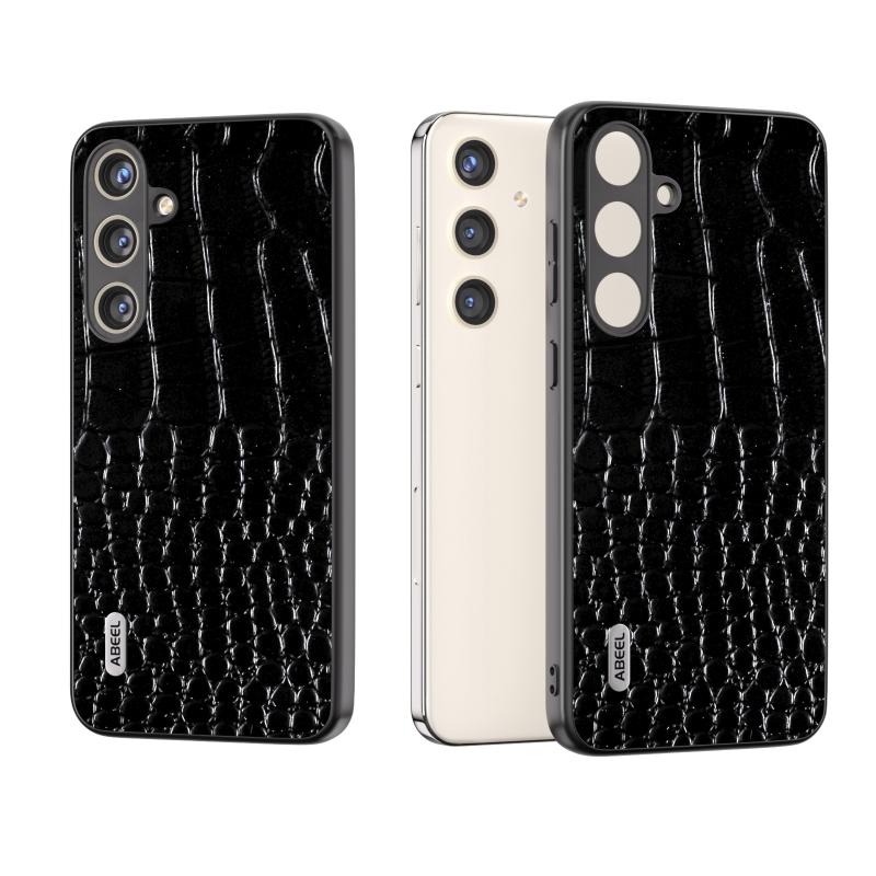 For Samsung Galaxy S24 5G ABEEL Genuine Leather Crocodile Pattern Phone Case(Black)