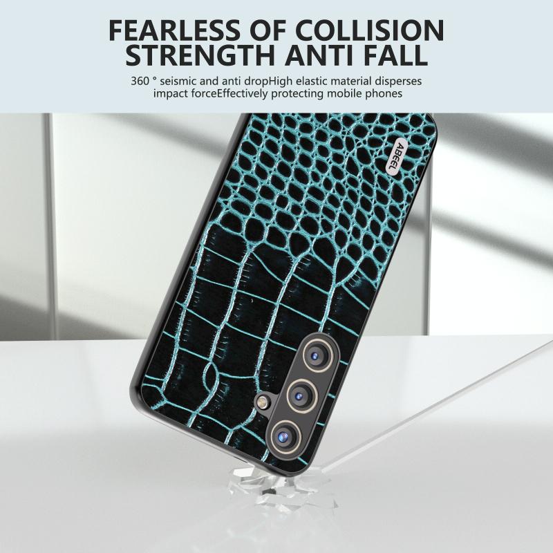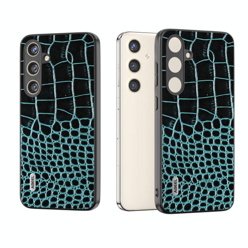 For Samsung Galaxy S24 5G ABEEL Genuine Leather Crocodile Pattern Phone Case(Blue)