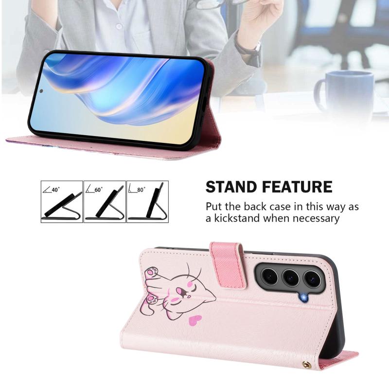 For Samsung Galaxy S24+ 5G Art Colored Drawing Pattern Leather Phone Case(Cute cat)
