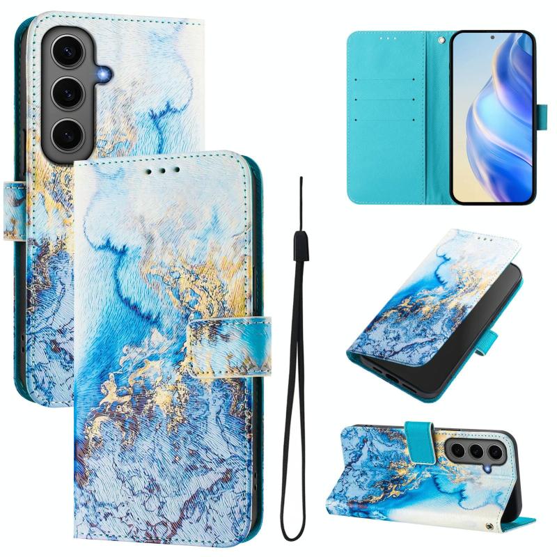 For Samsung Galaxy S24+ 5G Art Colored Drawing Pattern Leather Phone Case(Ocean marble)