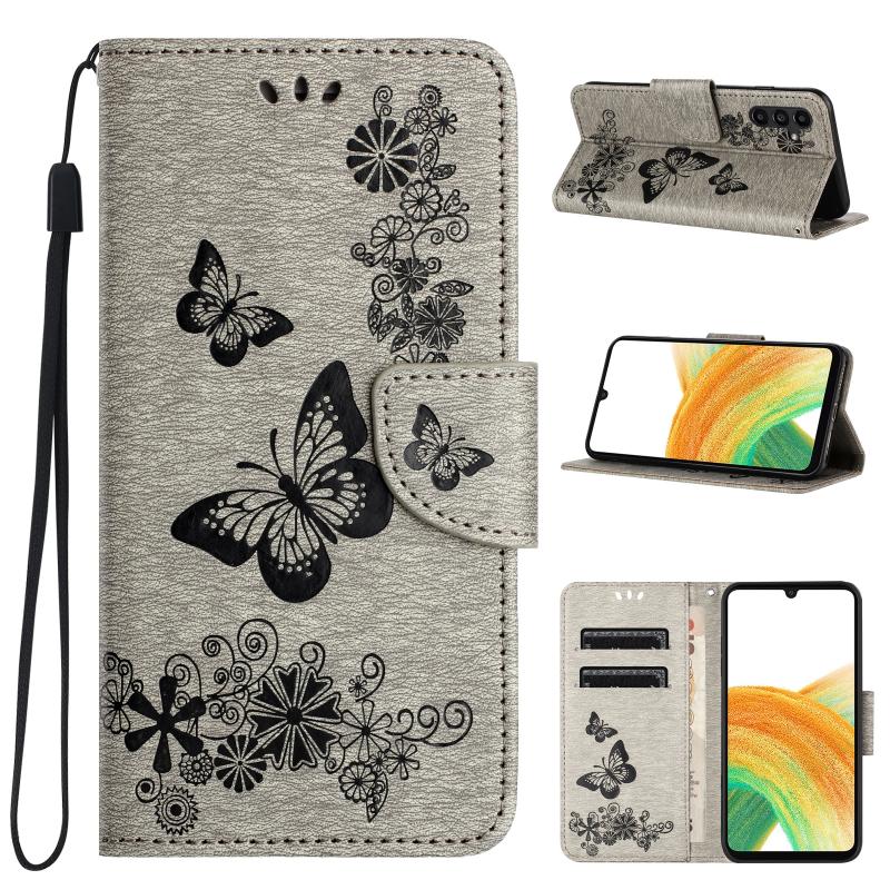 For Samsung Galaxy S24+ 5G Butterfly Embossed Flip Leather Phone Case(Grey)