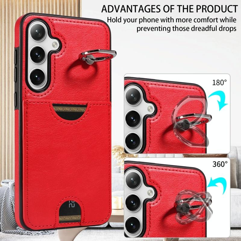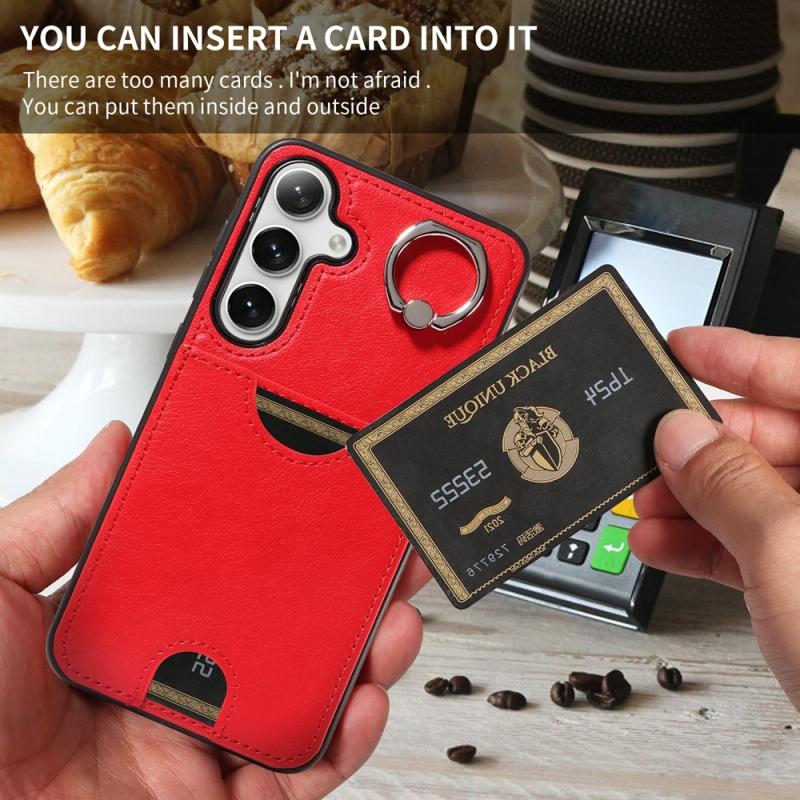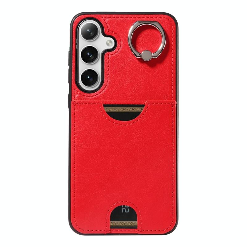 For Samsung Galaxy S24+ 5G Calf Texture Card Slot Ring Holder Phone Case(Red)