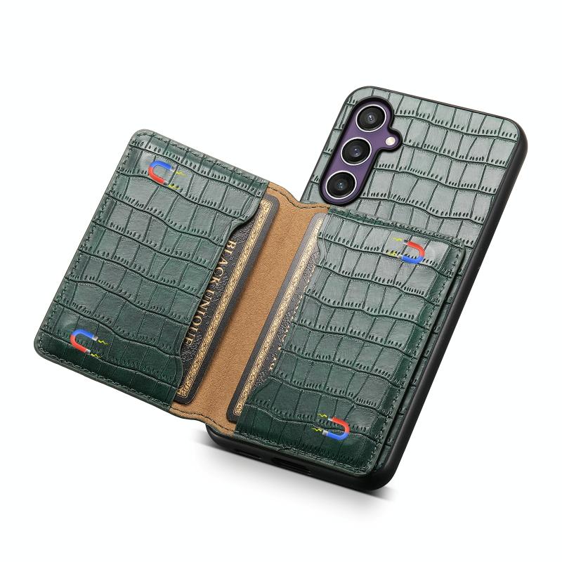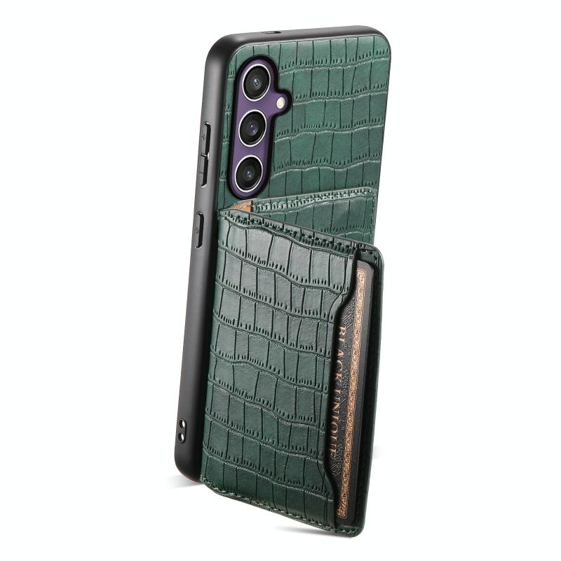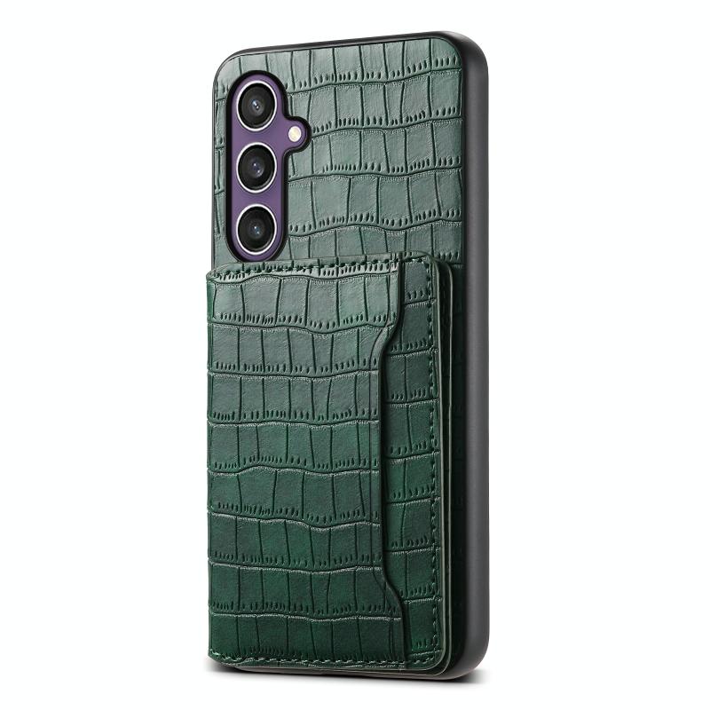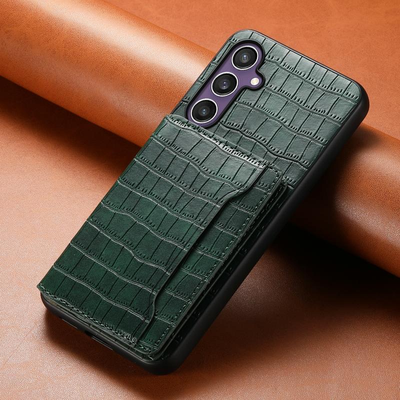 For Samsung Galaxy S24+ 5G Crocodile Texture Card Bag Design Full Coverage Phone Case(Green)