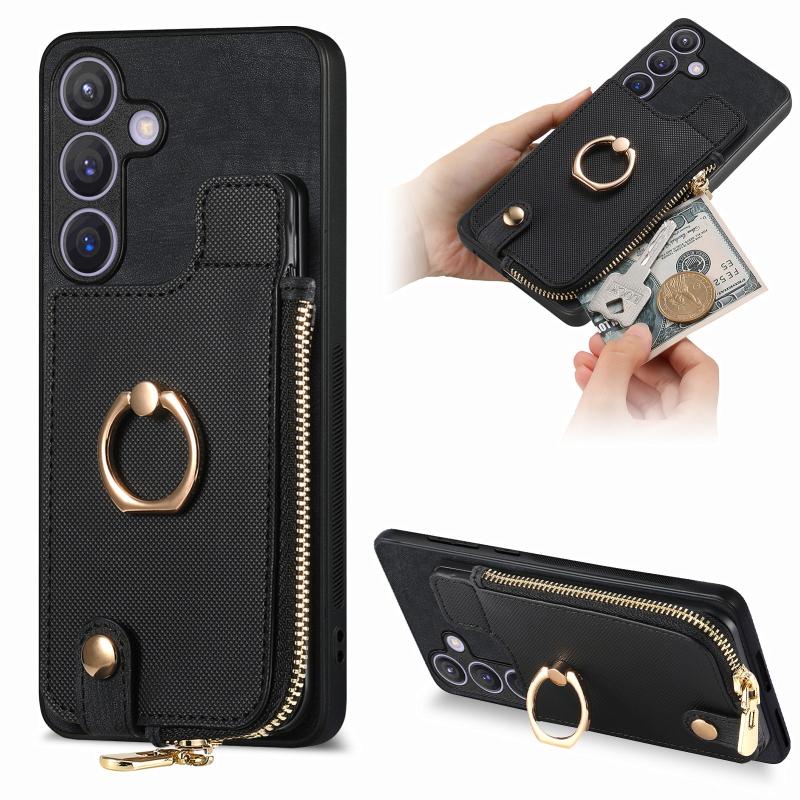 For Samsung Galaxy S24+ 5G Cross Leather Ring Vertical Zipper Wallet Back Phone Case(Black)