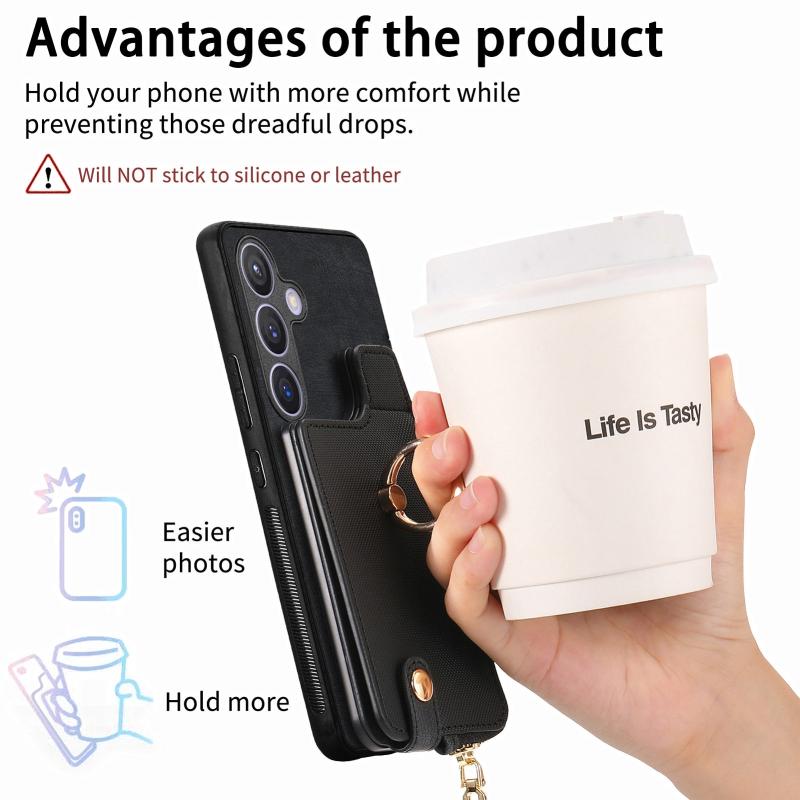 2. Zipper Wallet Function: The leather case is equipped with card slots for placing cards and a small amount of cash.
