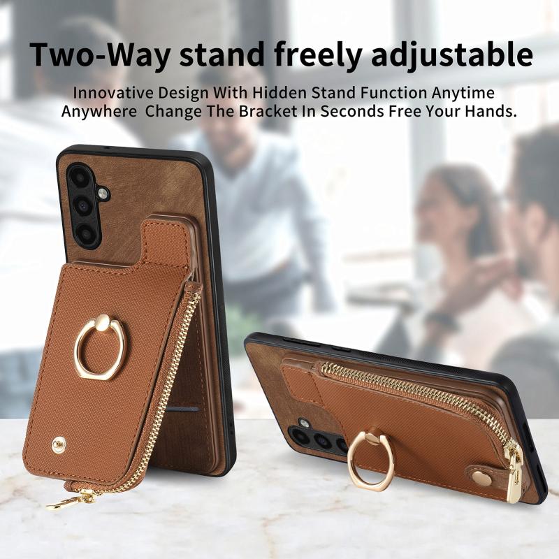 For Samsung Galaxy S24+ 5G Cross Leather Ring Vertical Zipper Wallet Back Phone Case(Brown)