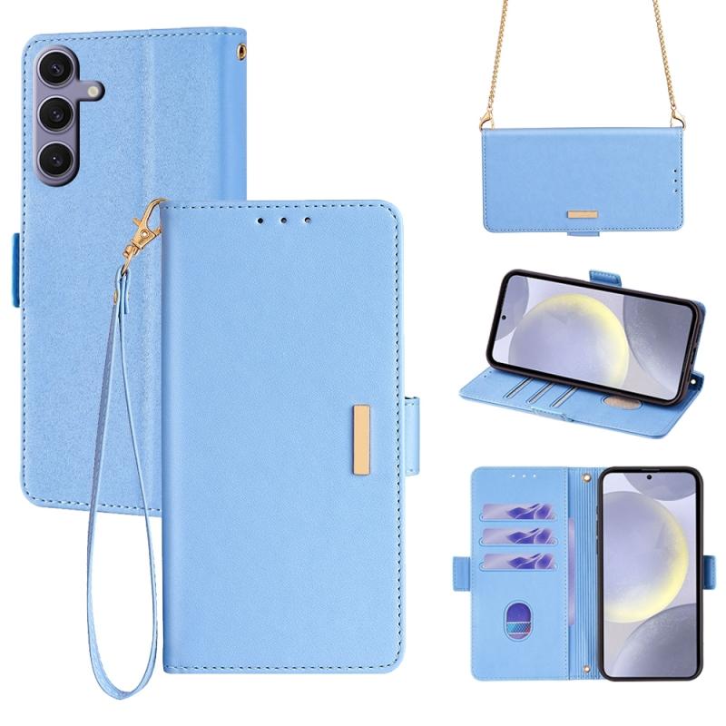 For Samsung Galaxy S24 5G Crossbody Chain Leather Phone Case(Blue)
