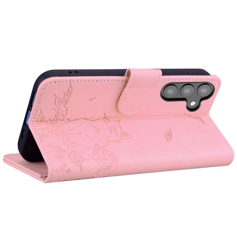 For Samsung Galaxy S24 5G Cute Cat Embossed Leather Phone Case(Pink)