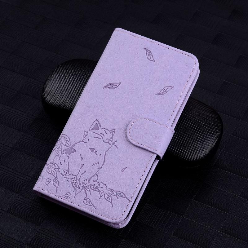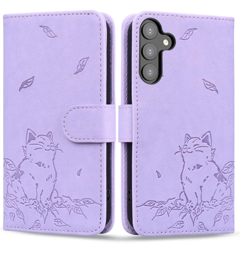 For Samsung Galaxy S24+ 5G Cute Cat Embossed Leather Phone Case(Purple)