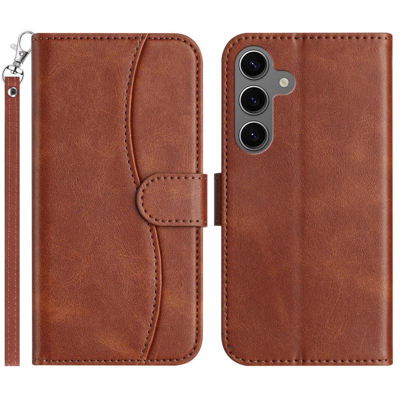 For Samsung Galaxy S24 5G Dual-Folded S-shape Leather Phone Case(Coffee)