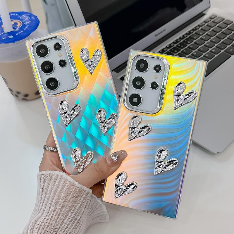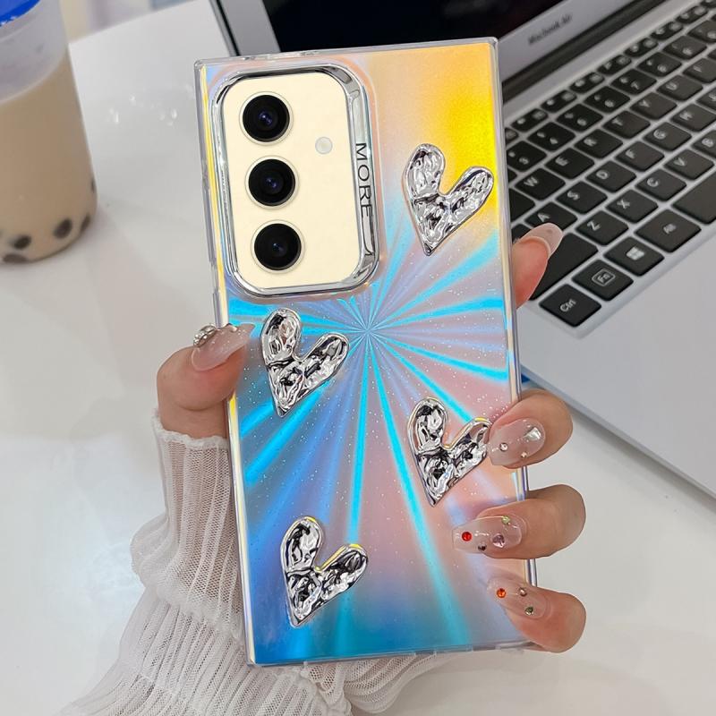 For Samsung Galaxy S24 5G Electroplating 4-Heart Laser Texture TPU Phone Case(CD Stripes)
