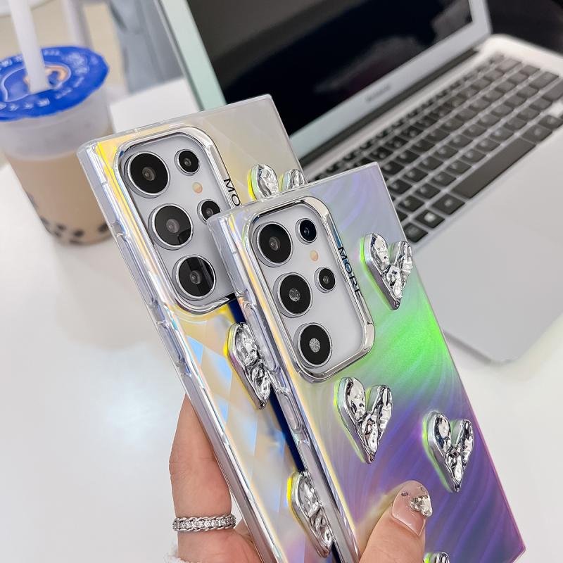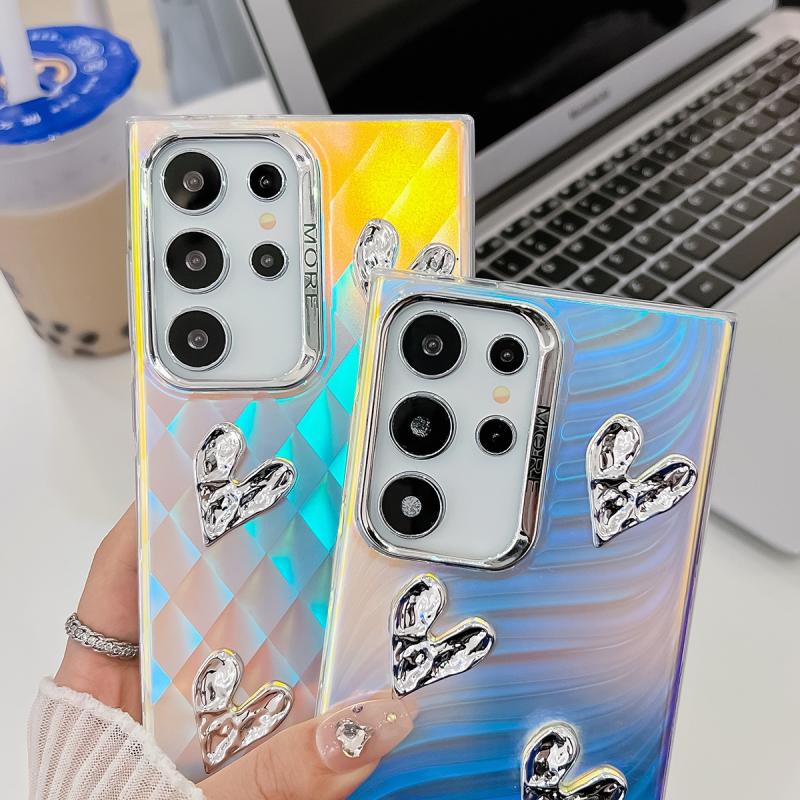 For Samsung Galaxy S24 5G Electroplating 4-Heart Laser Texture TPU Phone Case(Feathers)