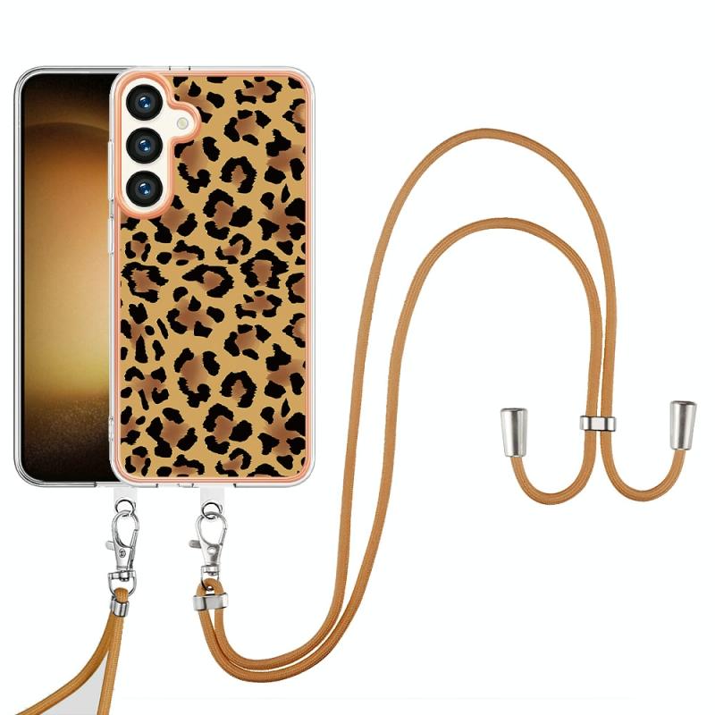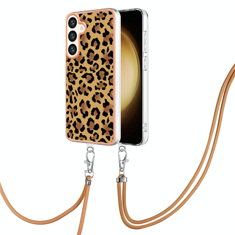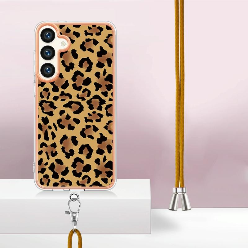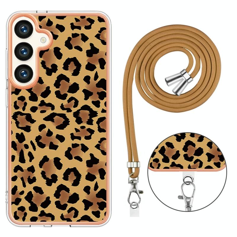 For Samsung Galaxy S24+ 5G Electroplating Dual-side IMD Phone Case with Lanyard(Leopard Print)