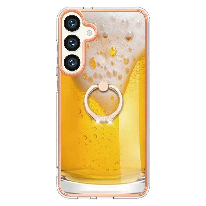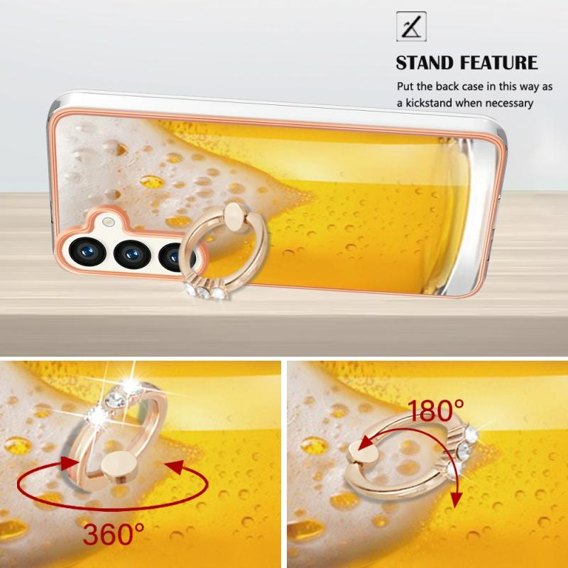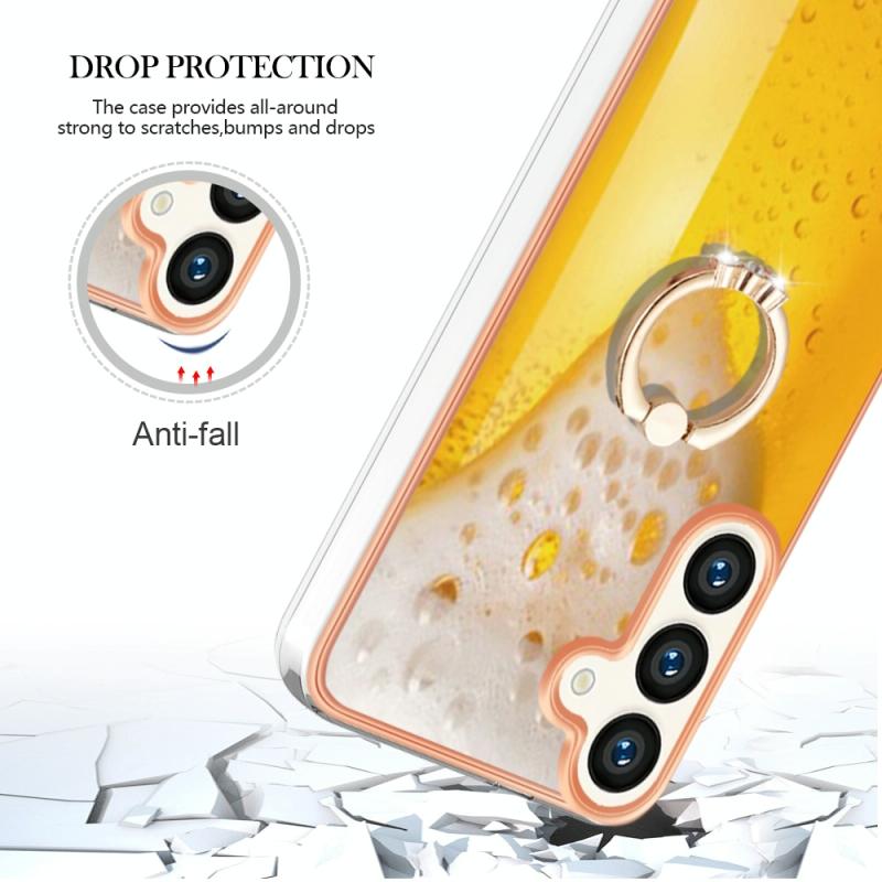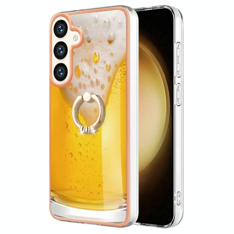 For Samsung Galaxy S24 5G Electroplating Dual-side IMD Phone Case with Ring Holder(Draft Beer)