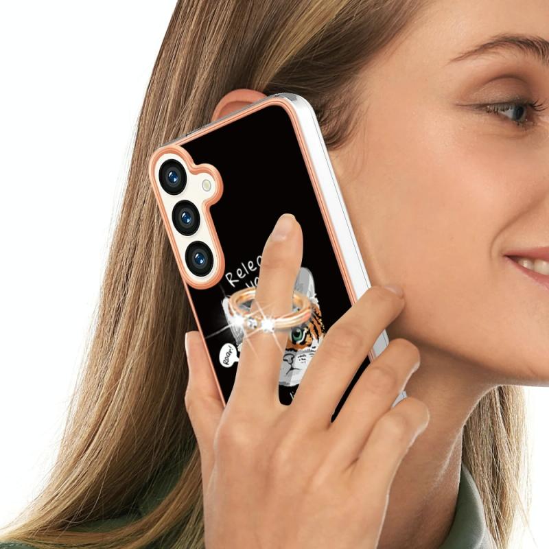 For Samsung Galaxy S24+ 5G Electroplating Dual-side IMD Phone Case with Ring Holder(Natural Growth)