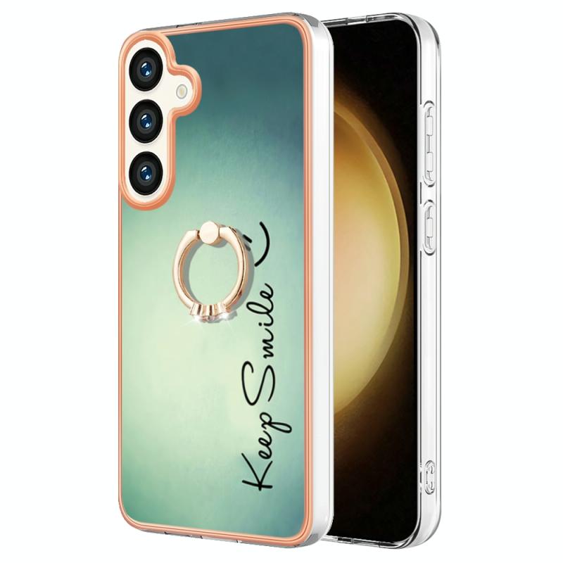 For Samsung Galaxy S24 5G Electroplating Dual-side IMD Phone Case with Ring Holder(Smile)