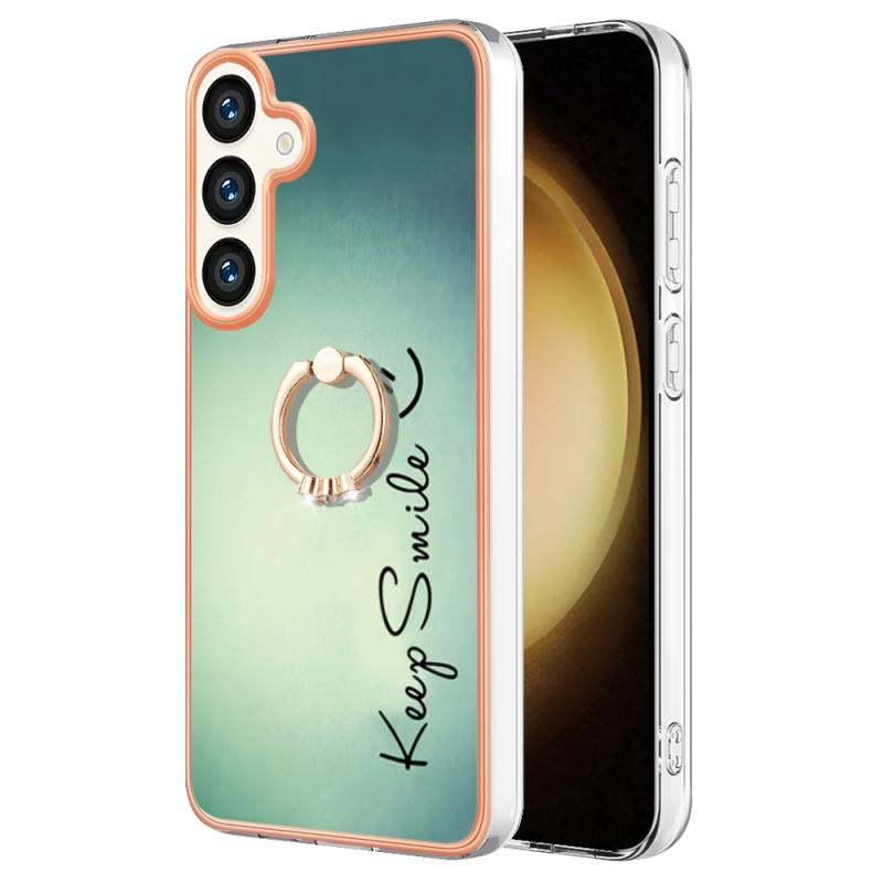 For Samsung Galaxy S24+ 5G Electroplating Dual-side IMD Phone Case with Ring Holder(Smile)