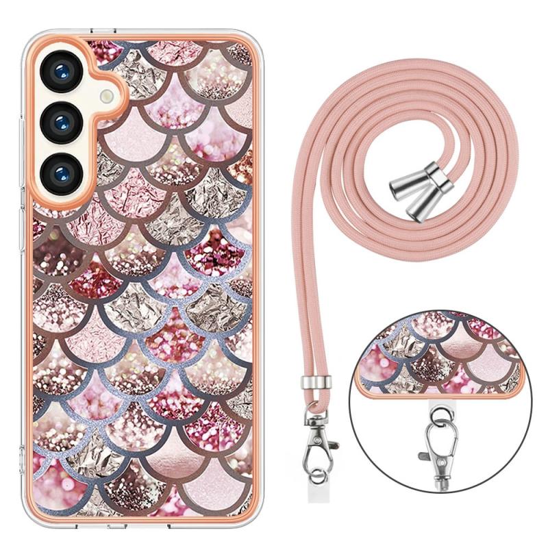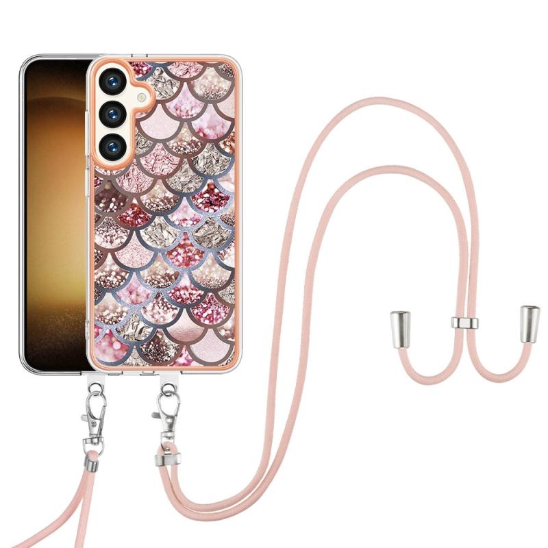 For Samsung Galaxy S24 5G Electroplating Pattern IMD TPU Shockproof Case with Neck Lanyard(Pink Scales)