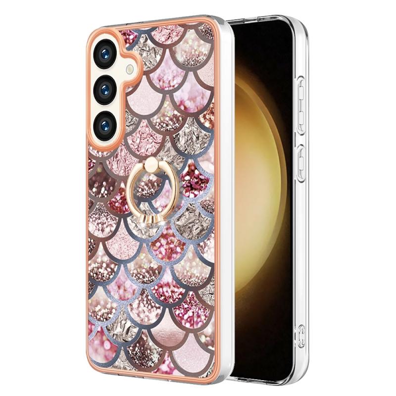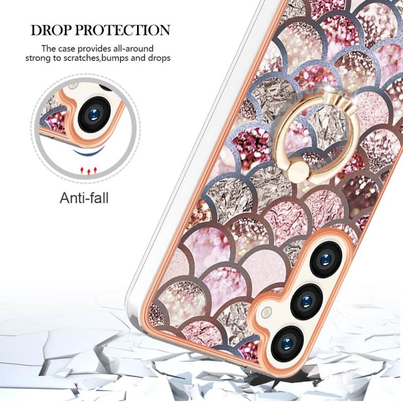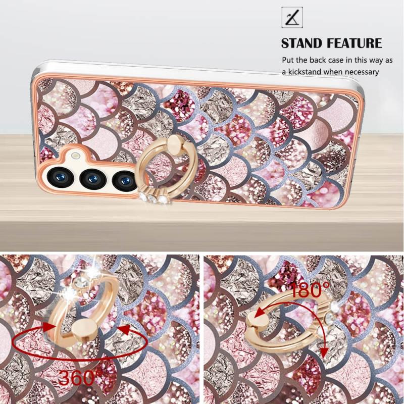 For Samsung Galaxy S24 5G Electroplating Pattern IMD TPU Shockproof Case with Rhinestone Ring Holder(Pink Scales)