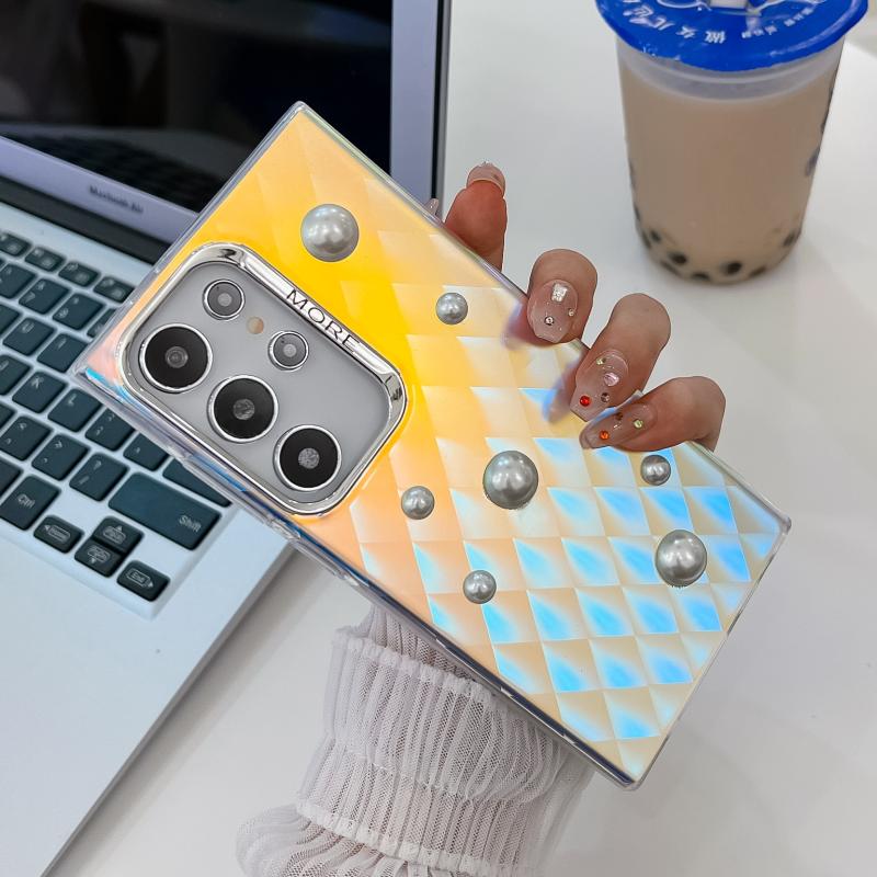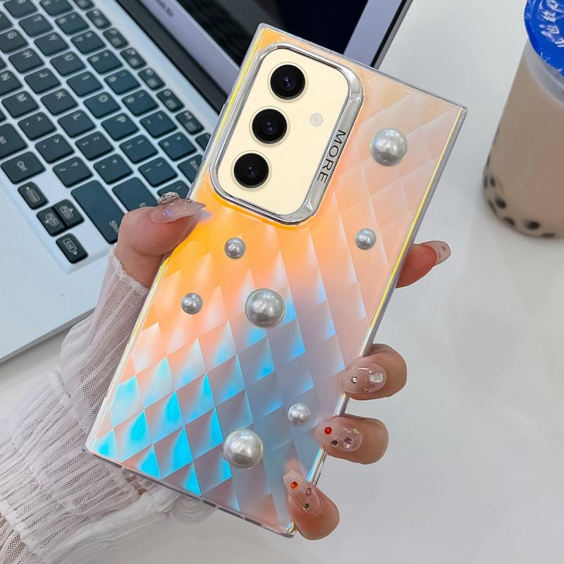 For Samsung Galaxy S24 5G Electroplating Pearl Laser Texture TPU Phone Case(Plaid)