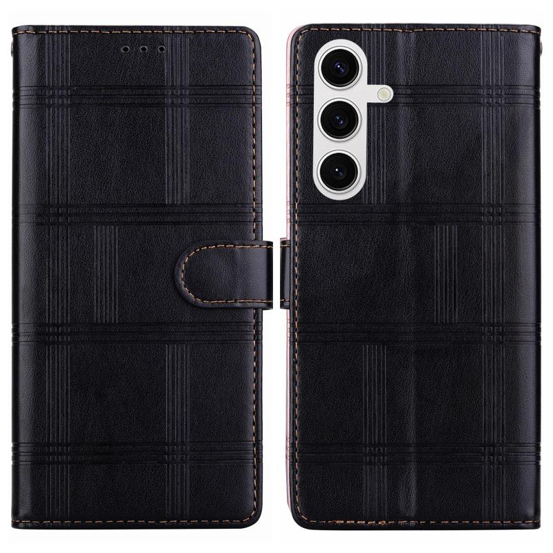 For Samsung Galaxy S24 5G Embossed Checkered Leather Phone Case(Black)