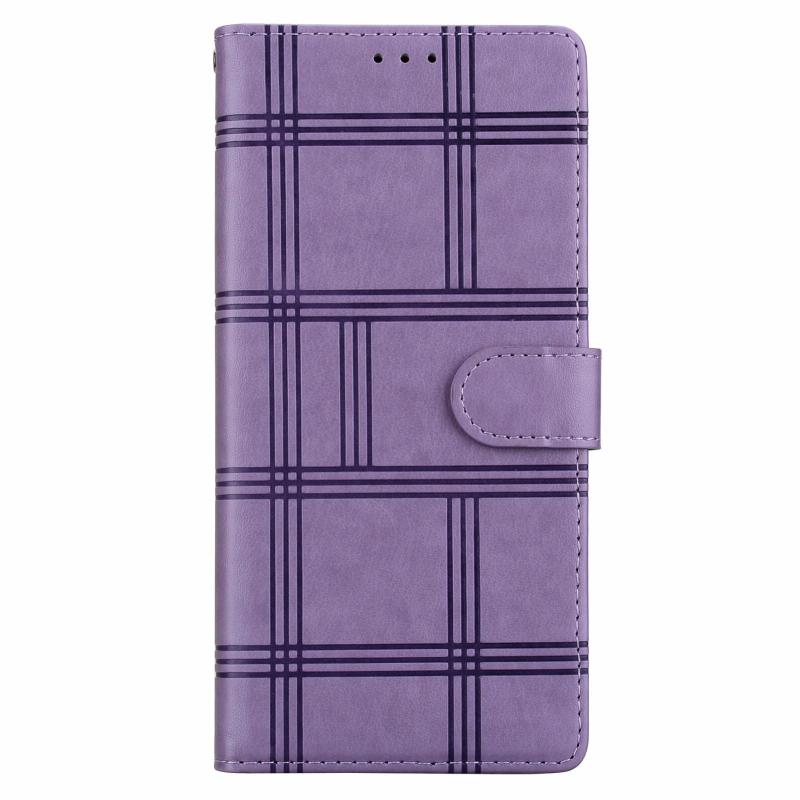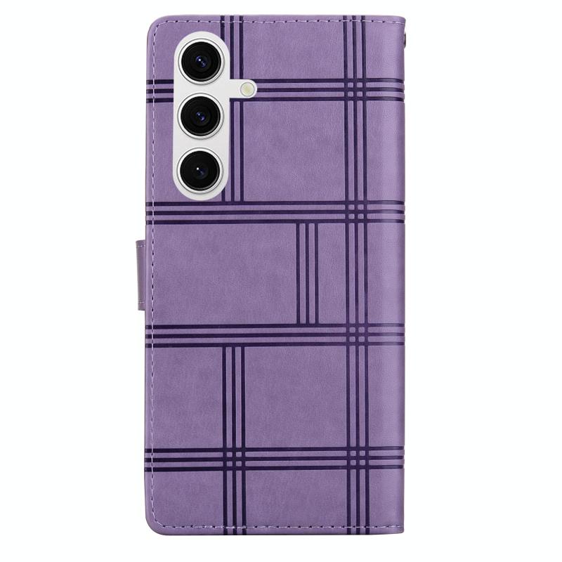 For Samsung Galaxy S24+ 5G Embossed Checkered Leather Phone Case(Purple)