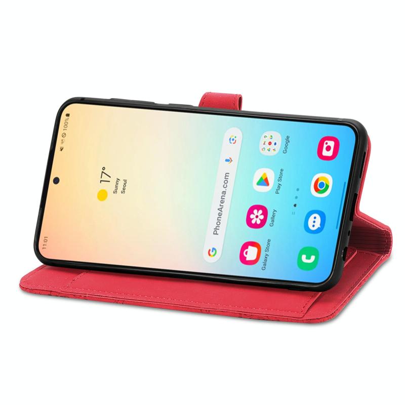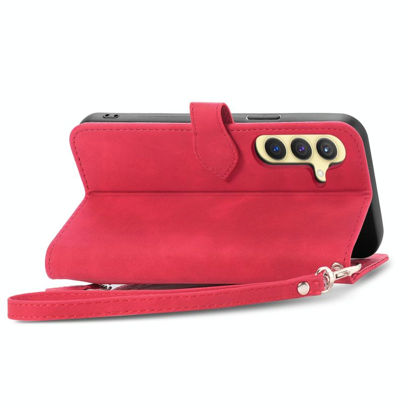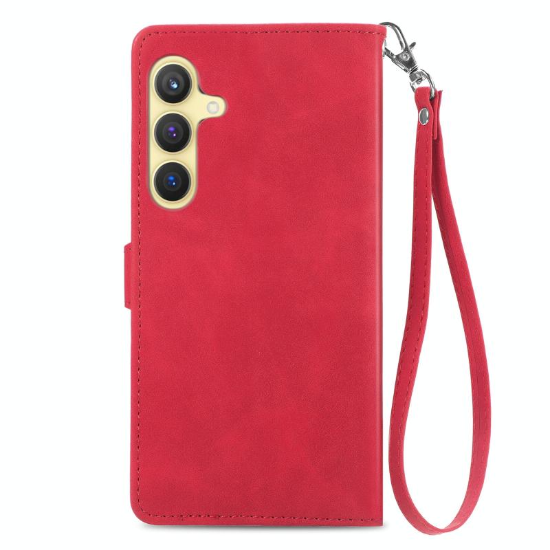 For Samsung Galaxy S24 5G Embossed Flower Zipper Leather Phone Case(Red)