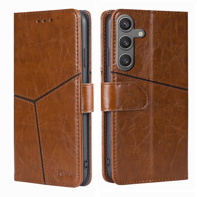 For Samsung Galaxy S24 5G Geometric Stitching Leather Phone Case(Light Brown)