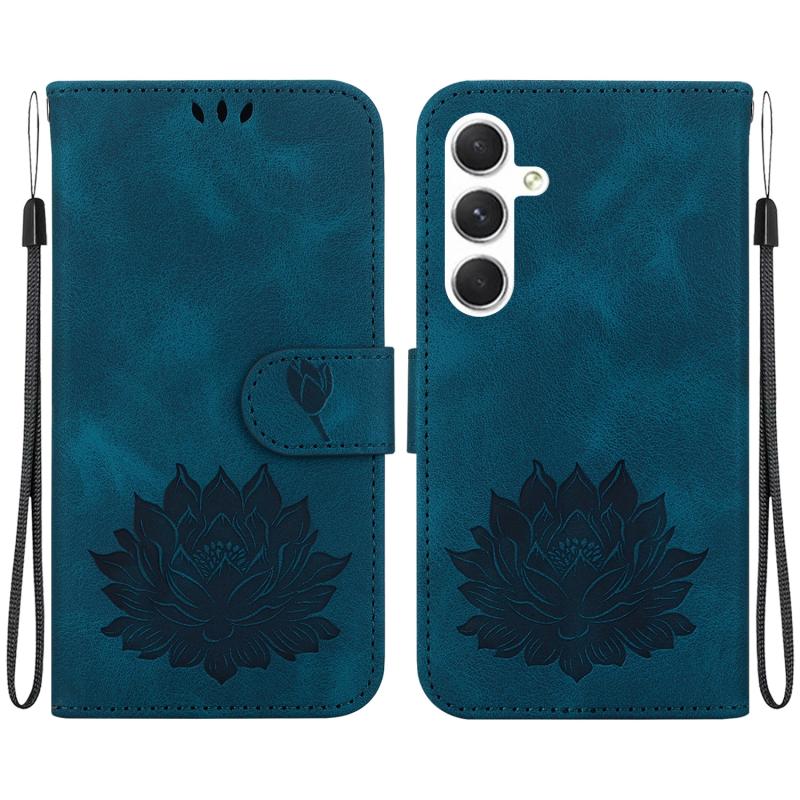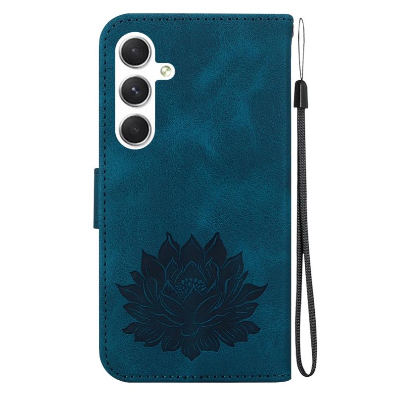 For Samsung Galaxy S24 5G Lotus Embossed Leather Phone Case(Dark Blue)