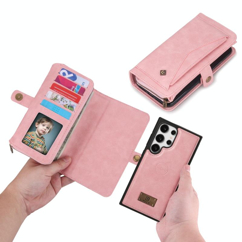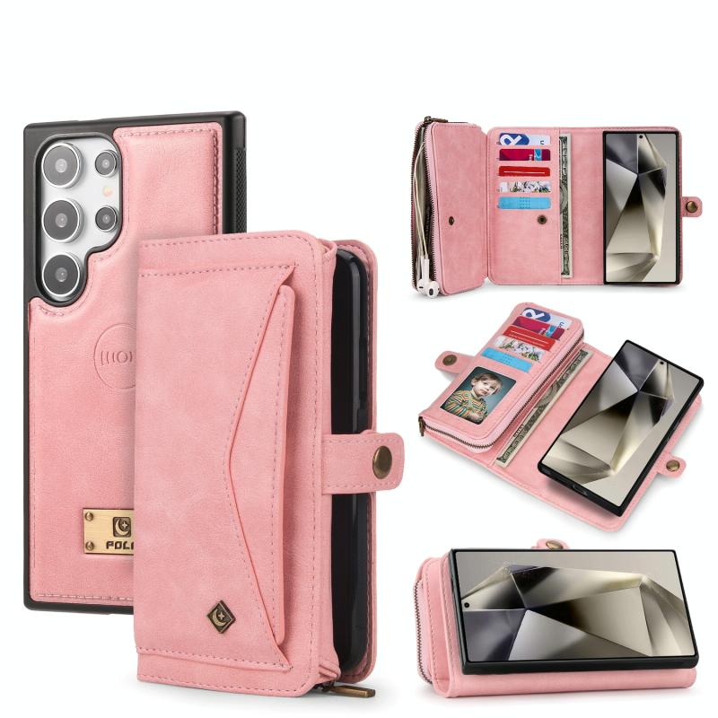 For Samsung Galaxy S24 5G Multi-functional Zipper Wallet Leather Phone Case(Pink)