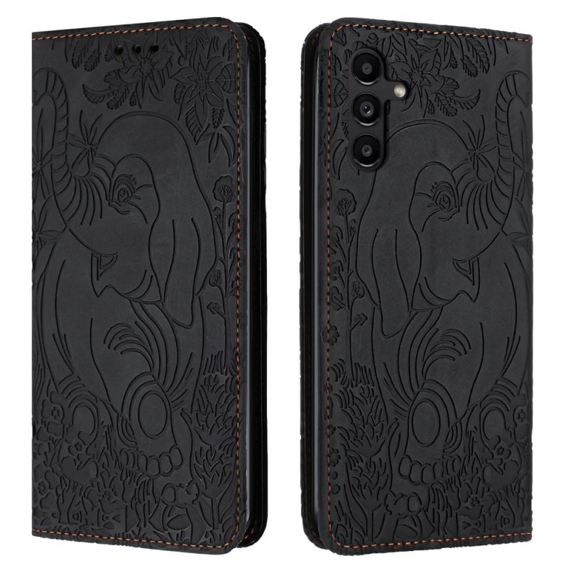 For Samsung Galaxy S24+ 5G Retro Elephant Embossed Leather Phone Case(Black)