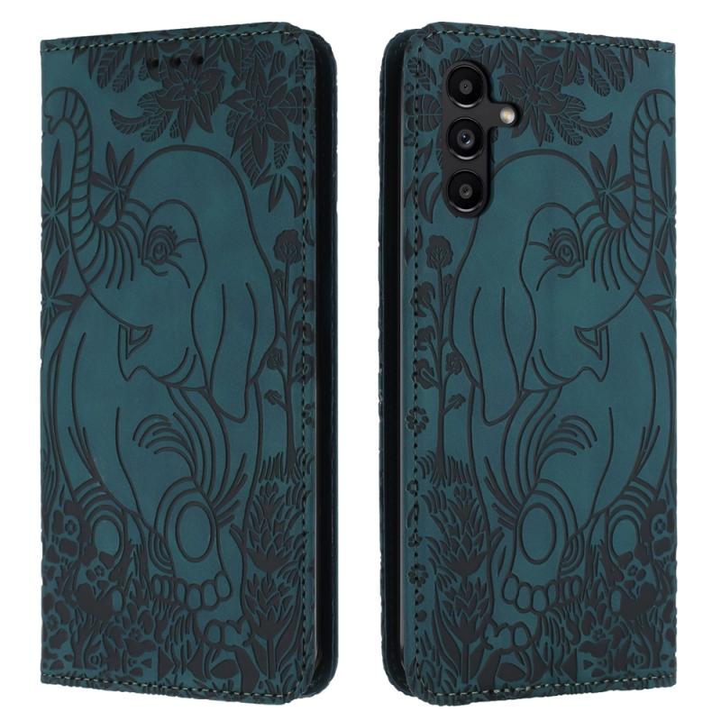 For Samsung Galaxy S24 5G Retro Elephant Embossed Leather Phone Case(Green)