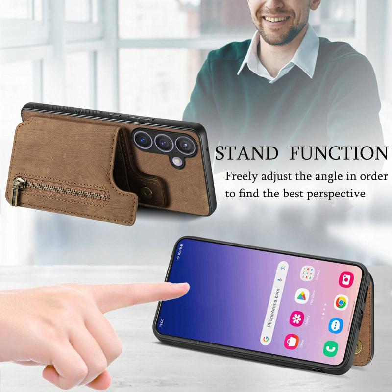For Samsung Galaxy S24+ 5G Retro Leather Zipper Wallet Back Phone Case(Brown)