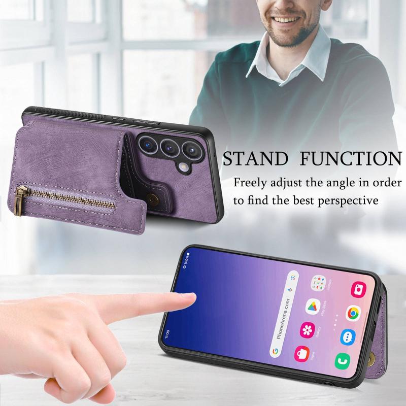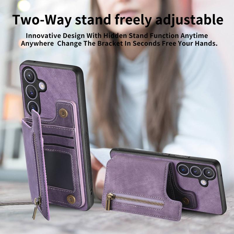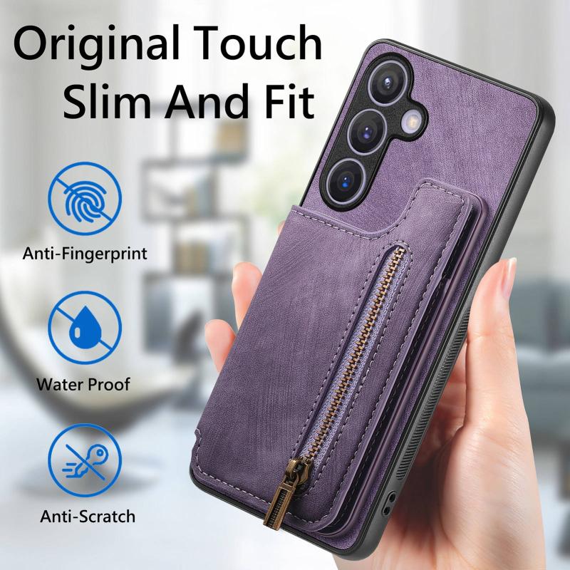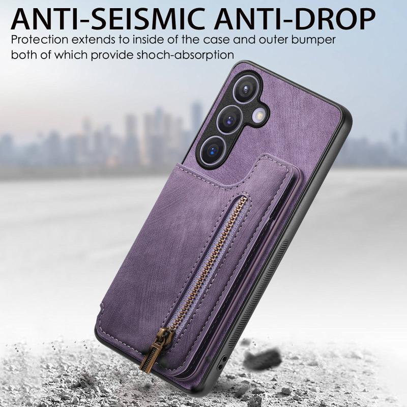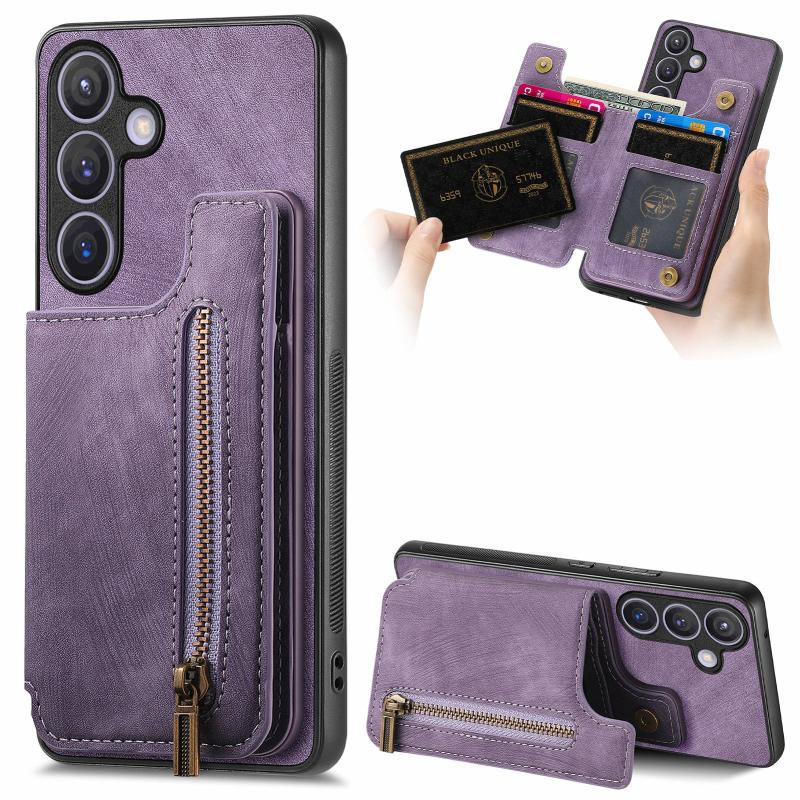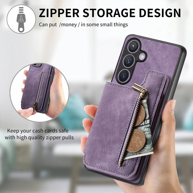 For Samsung Galaxy S24+ 5G Retro Leather Zipper Wallet Back Phone Case(Purple)