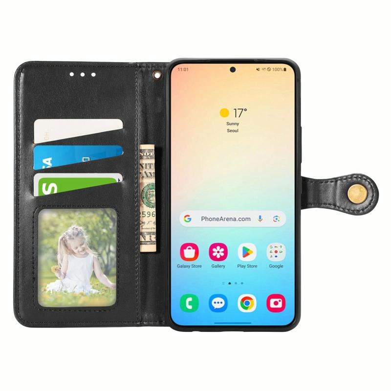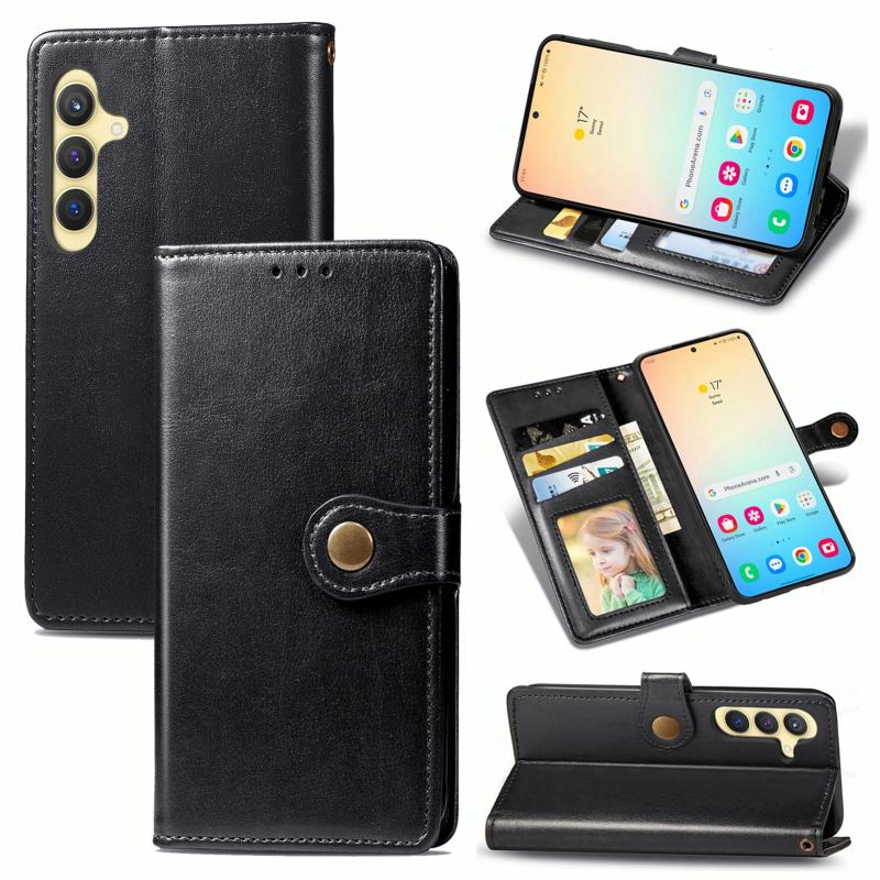 For Samsung Galaxy S24 5G Retro Solid Color Buckle Leather Phone Case(Black)