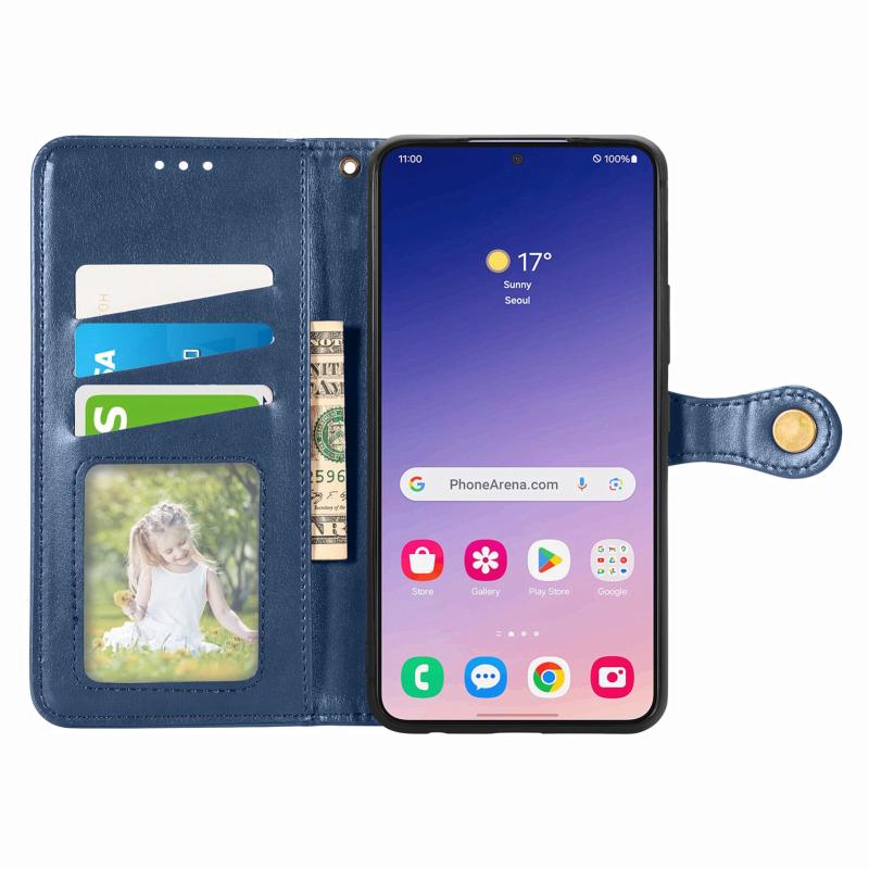 For Samsung Galaxy S24+ 5G Retro Solid Color Buckle Leather Phone Case(Blue)