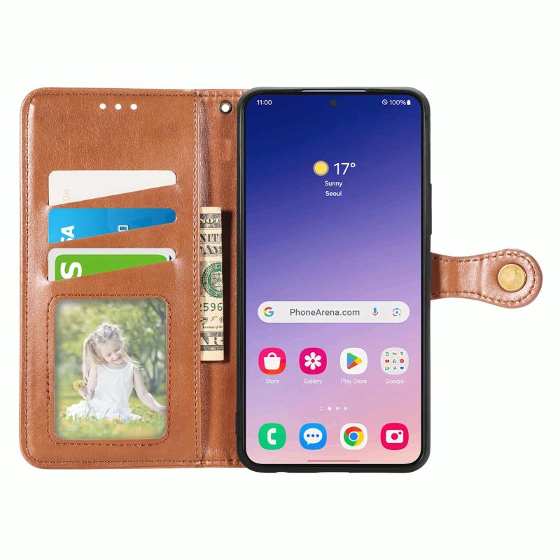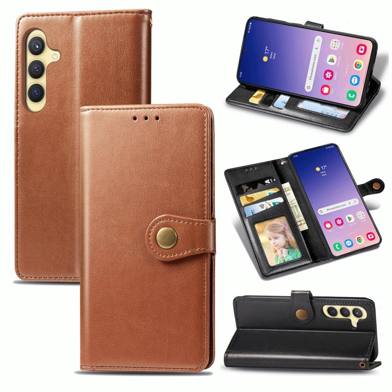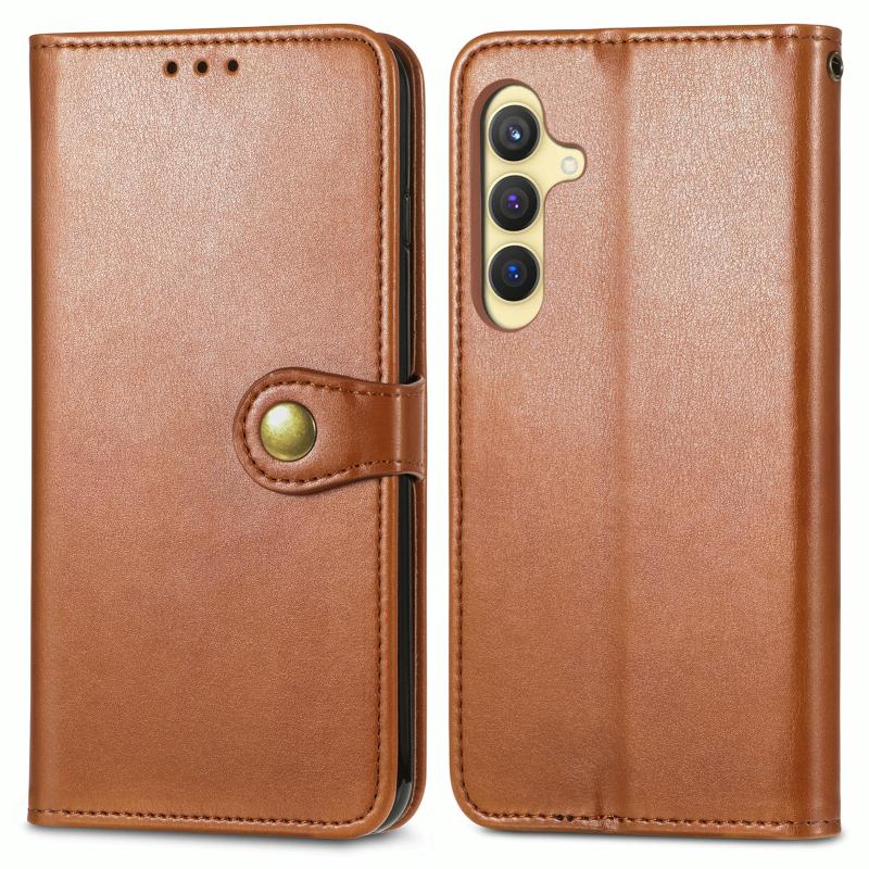 For Samsung Galaxy S24+ 5G Retro Solid Color Buckle Leather Phone Case(Brown)