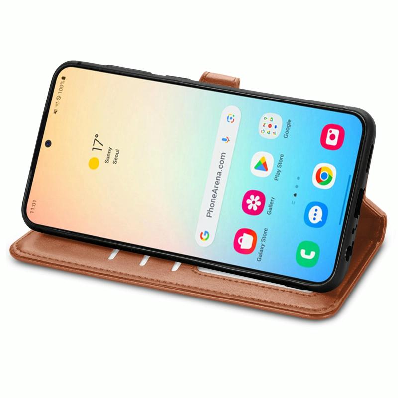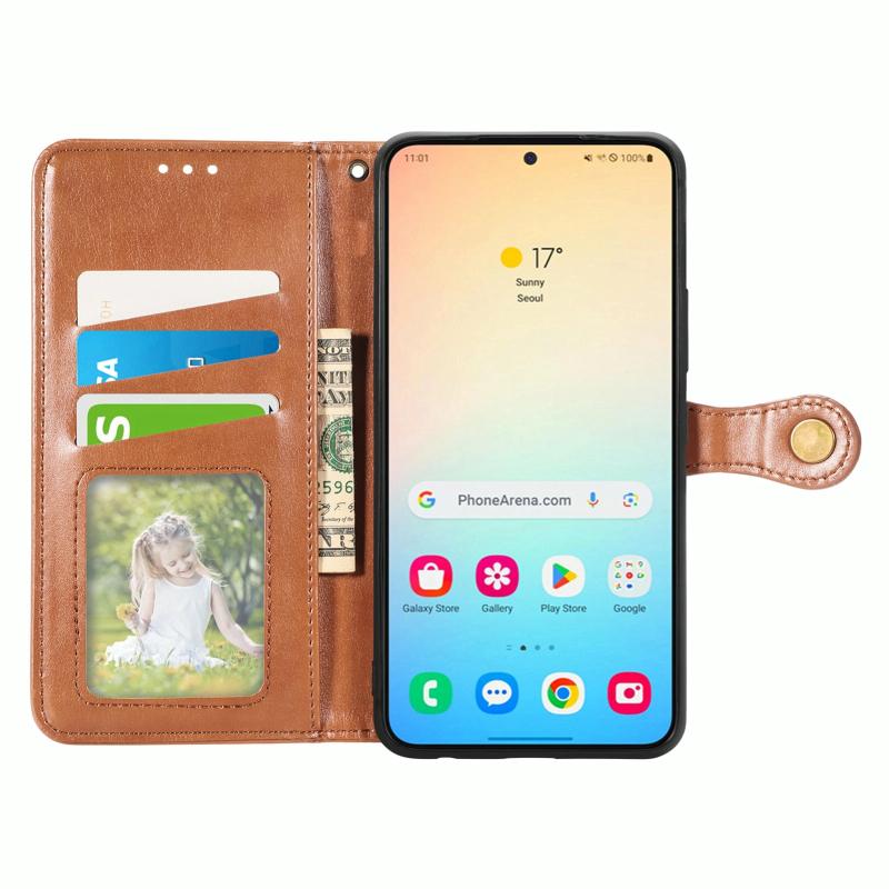 For Samsung Galaxy S24 5G Retro Solid Color Buckle Leather Phone Case(Brown)