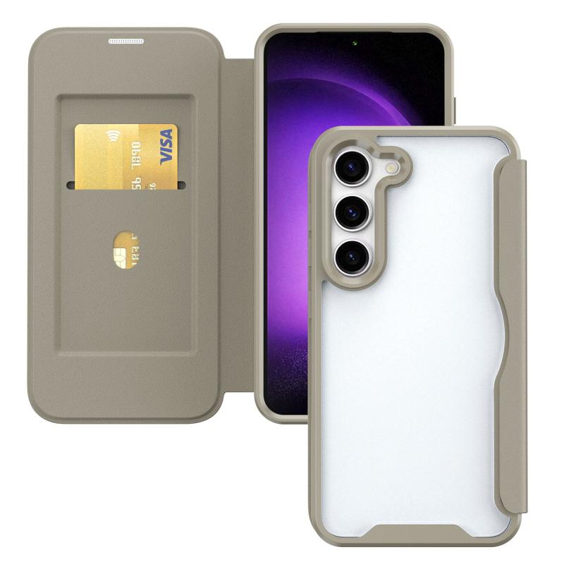 For Samsung Galaxy S24 5G RFID Blocking Adsorption Flip Leather Phone Case(Khaki)