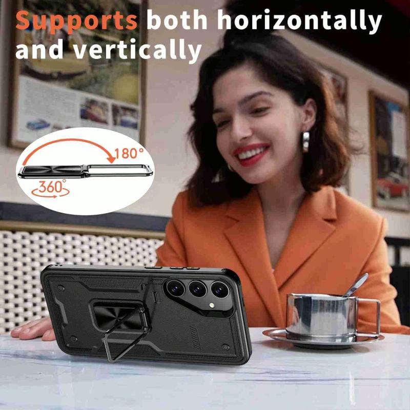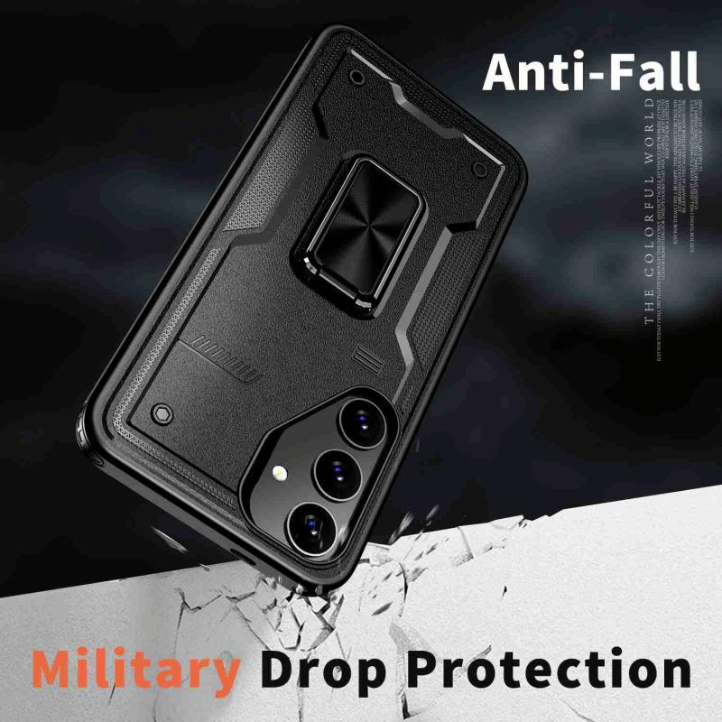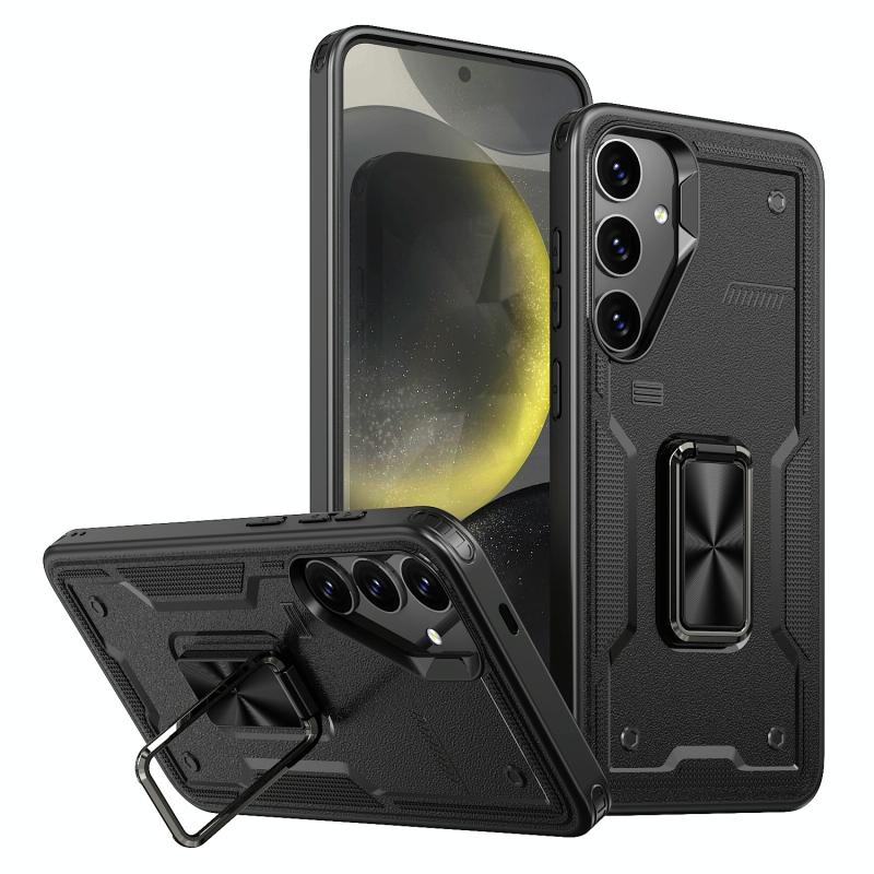 For Samsung Galaxy S24+ 5G Ring Holder PC Hybrid TPU Phone Case(Black)