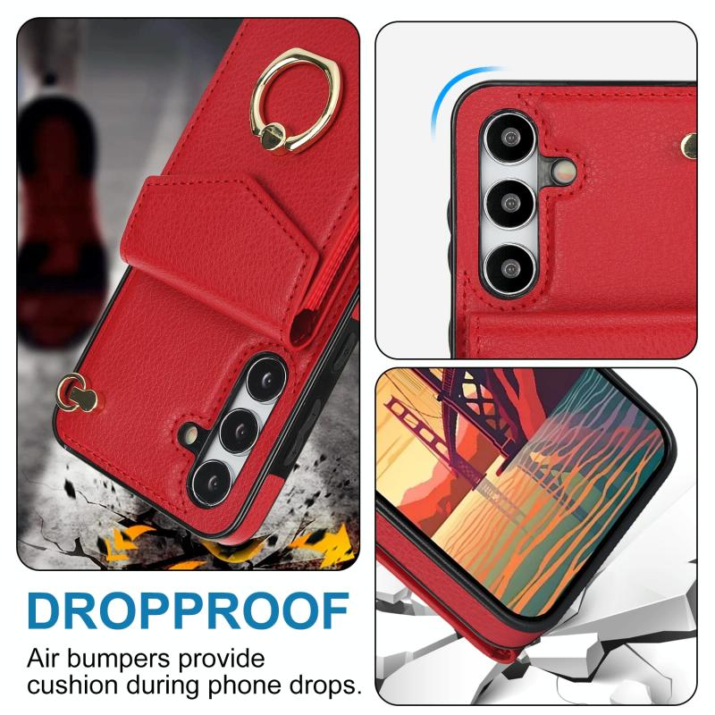 For Samsung Galaxy S24+ 5G Ring Holder RFID Card Slot Phone Case(Red)