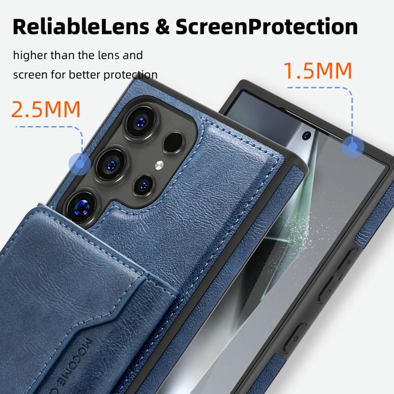 For Samsung Galaxy S24 5G Shield Multi-functional MagSafe Card Bag Phone Case(Blue)