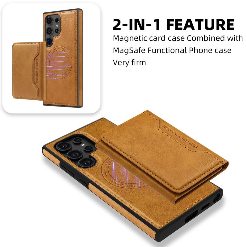 For Samsung Galaxy S24+ 5G Shield Multi-functional MagSafe Card Bag Phone Case(Brown)
