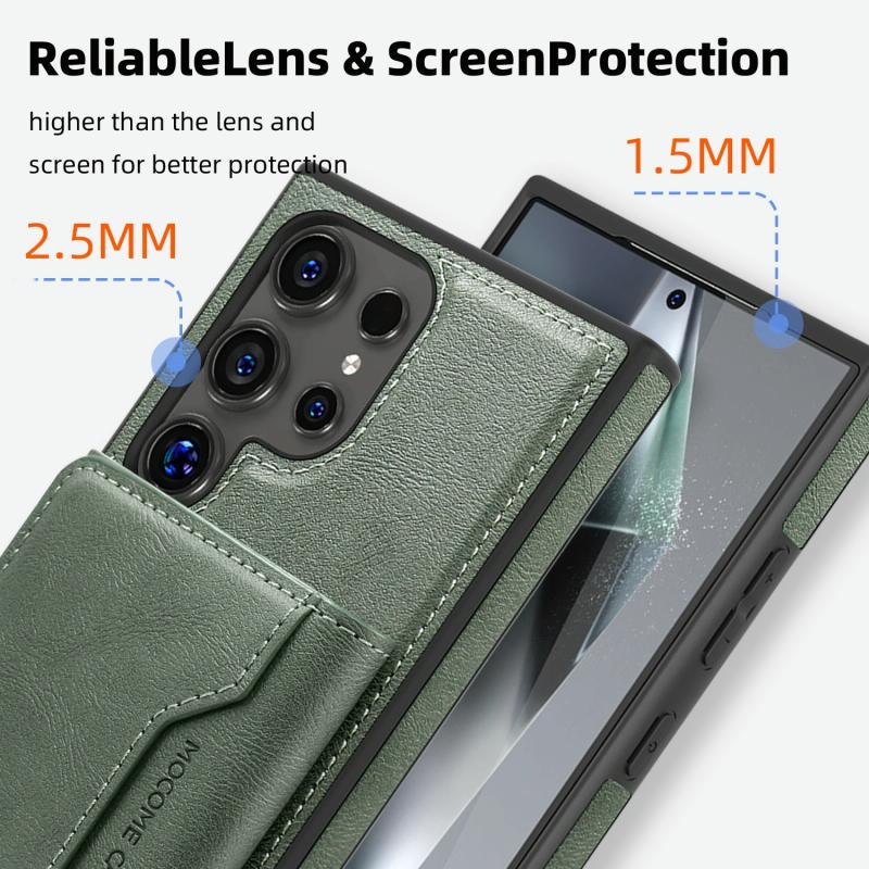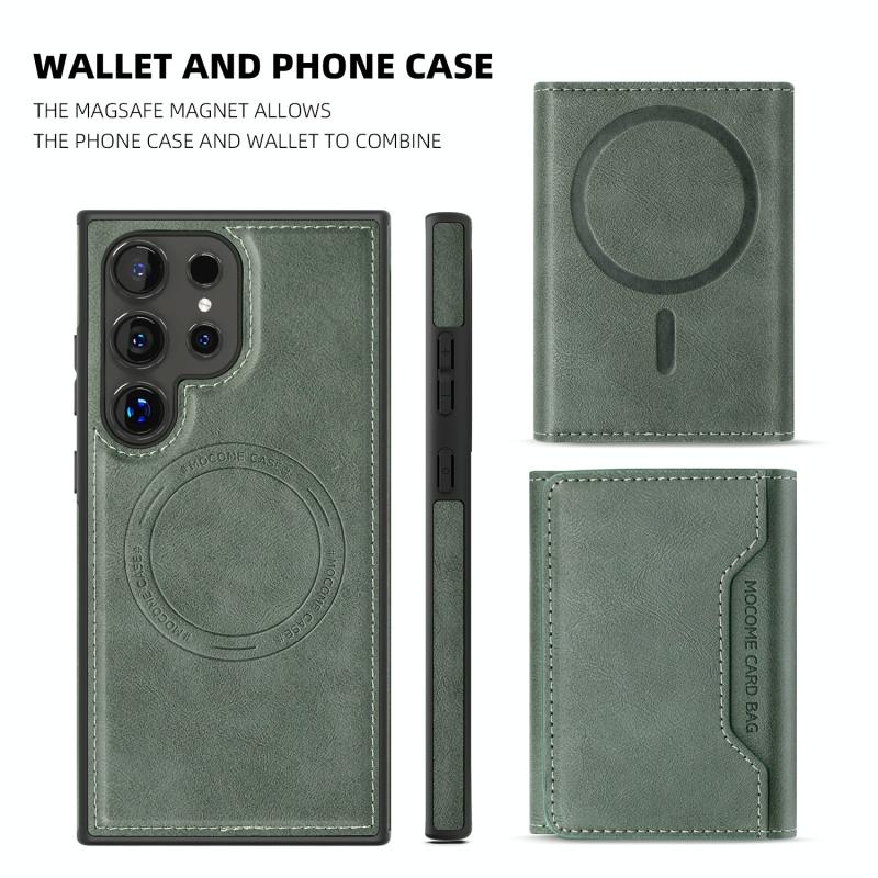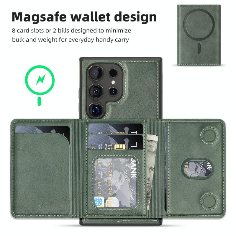 For Samsung Galaxy S24+ 5G Shield Multi-functional MagSafe Card Bag Phone Case(Green)