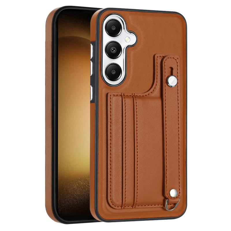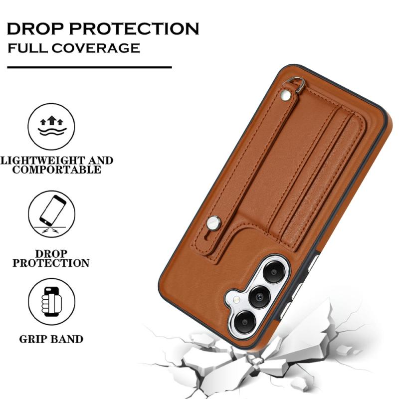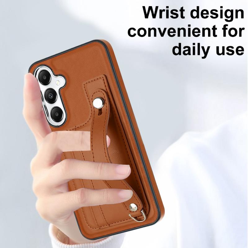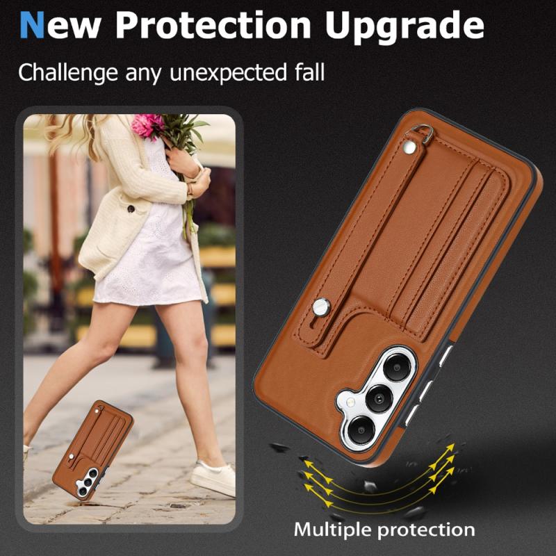 For Samsung Galaxy S24 5G Shockproof Leather Phone Case with Wrist Strap(Brown)