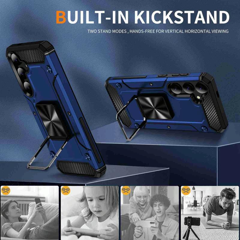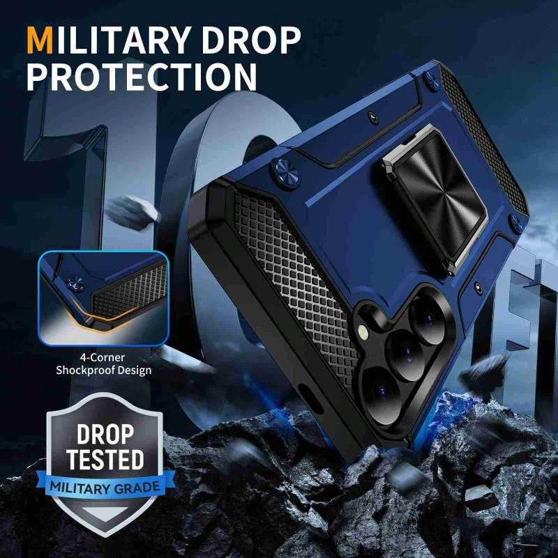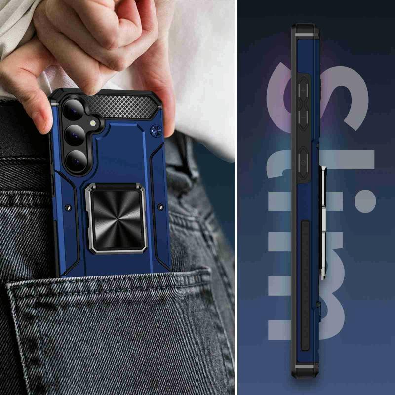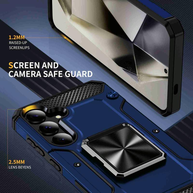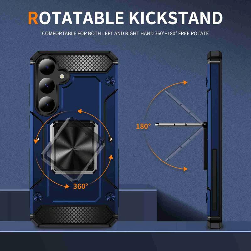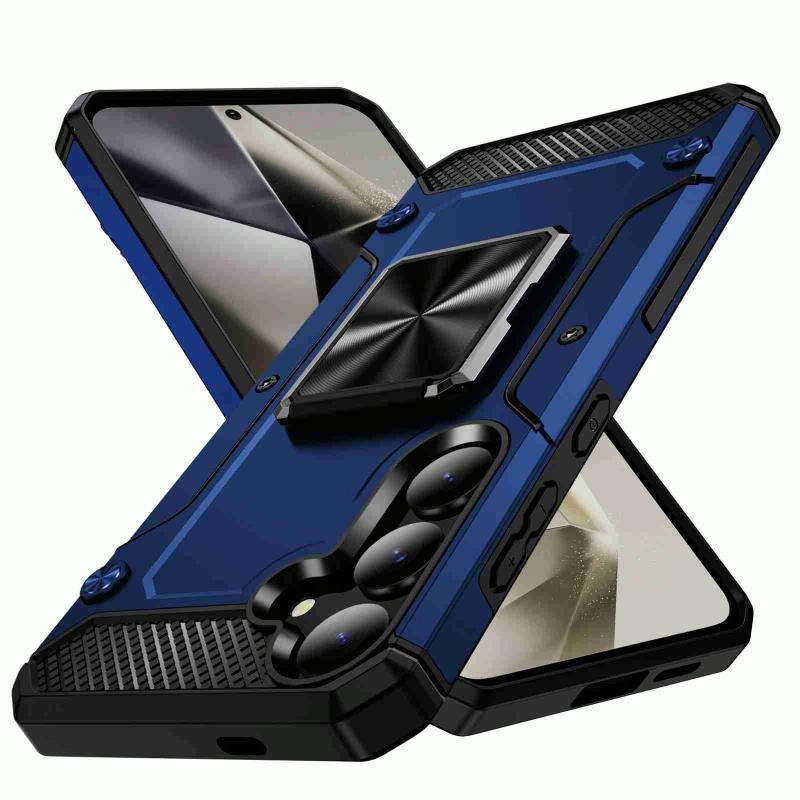 For Samsung Galaxy S24 5G Shockproof Metal Holder Phone Case(Blue)