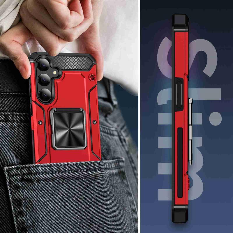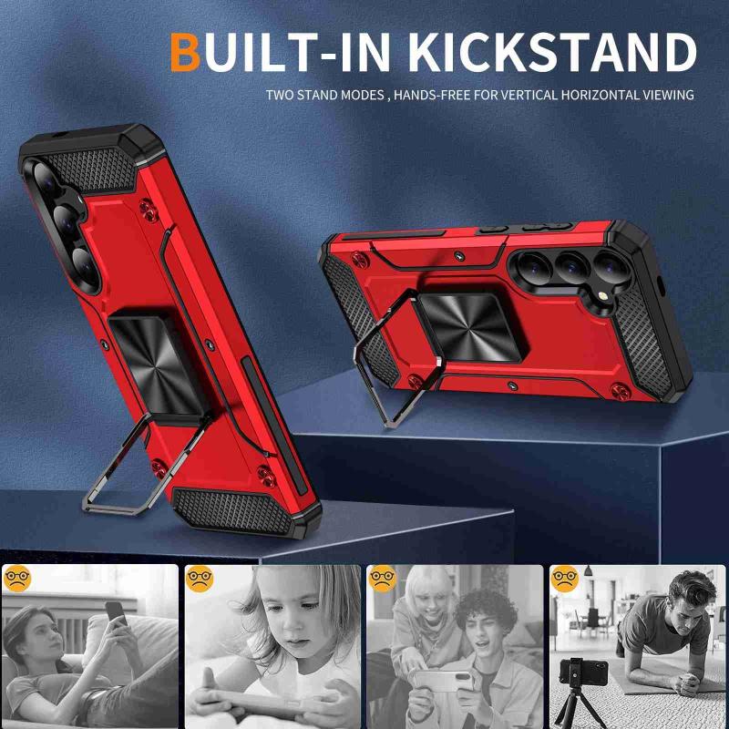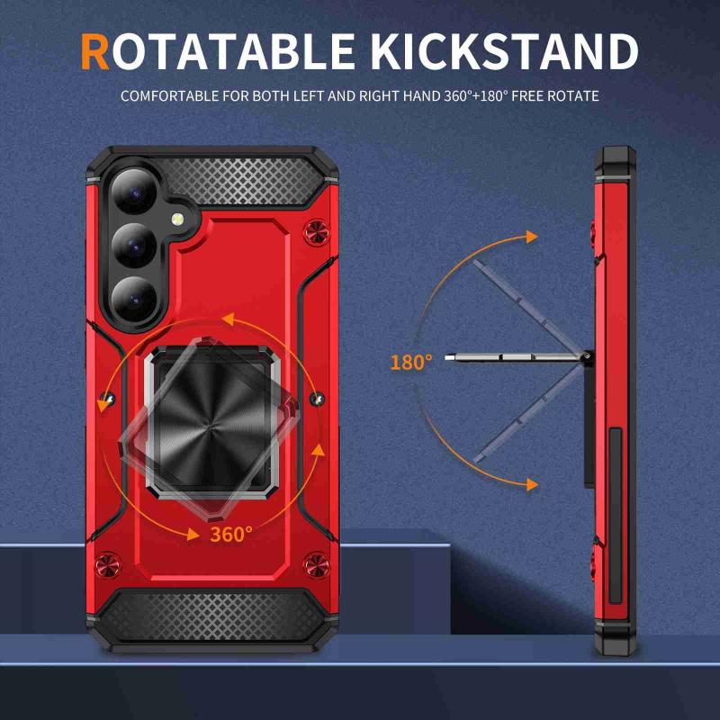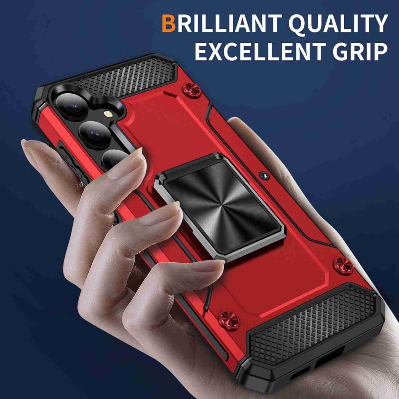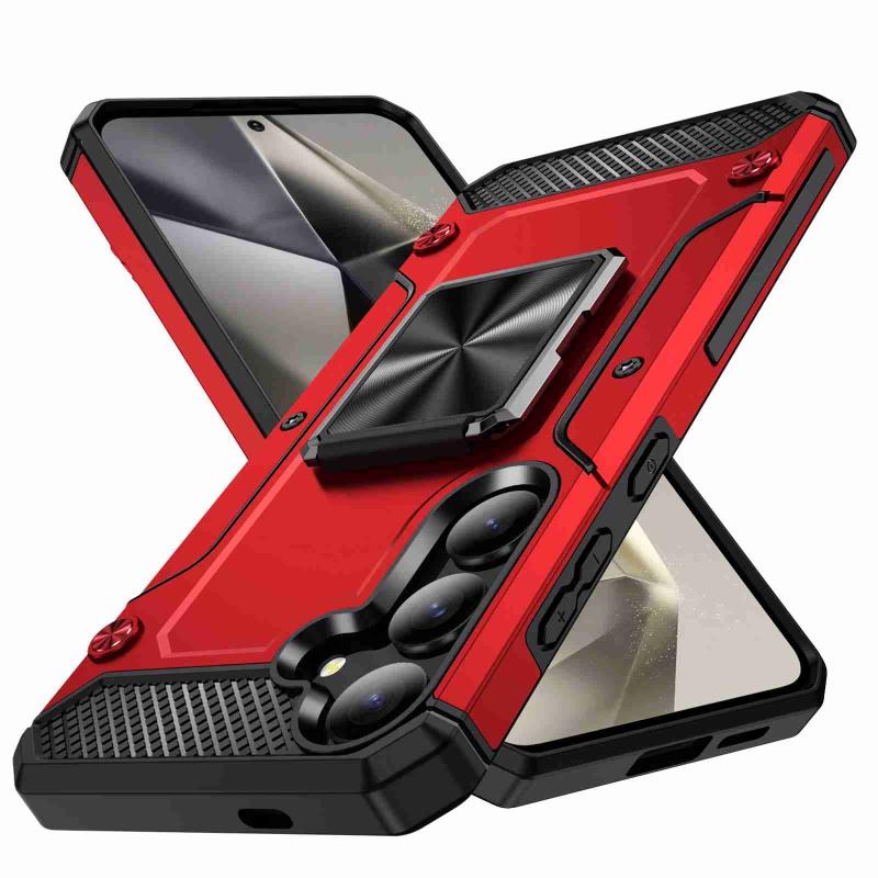 For Samsung Galaxy S24 5G Shockproof Metal Holder Phone Case(Red)