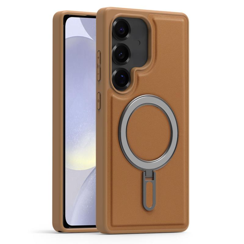 For Samsung Galaxy S24 5G Silver Shield MagSafe Holder Shockproof Phone Case(Brown)