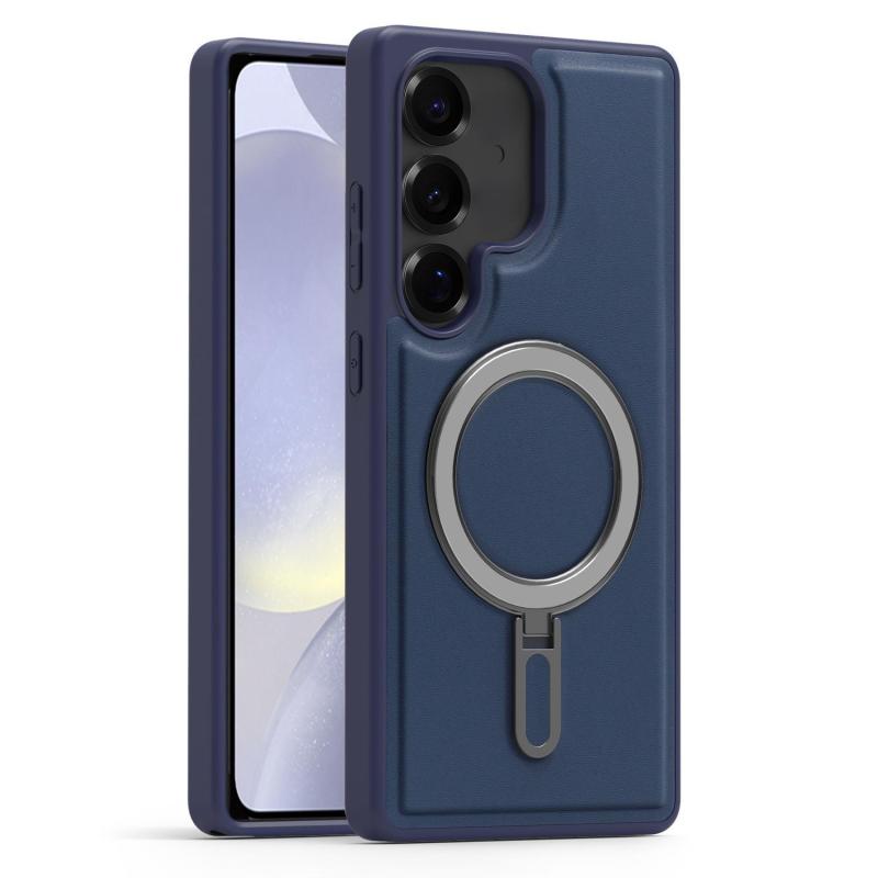 For Samsung Galaxy S24+ 5G Silver Shield MagSafe Holder Shockproof Phone Case(Deep Blue)