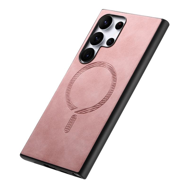 For Samsung Galaxy S24 5G Solid Color Retro Magsafe PU Back Cover Phone Case(Pink)